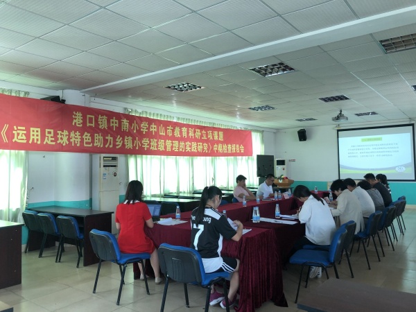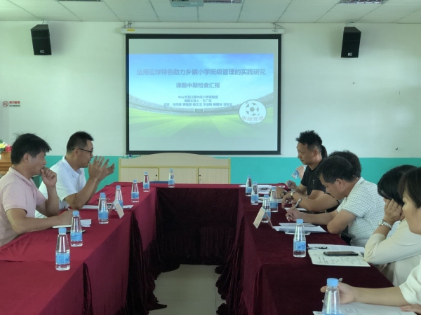 2020年6月15日下午,中南小學足球課題組召開了課題中期匯報交流會,參加匯報會的有中山市華僑中學王世勛教授以及港口鎮教育事務指導中心陳樹洪專干。