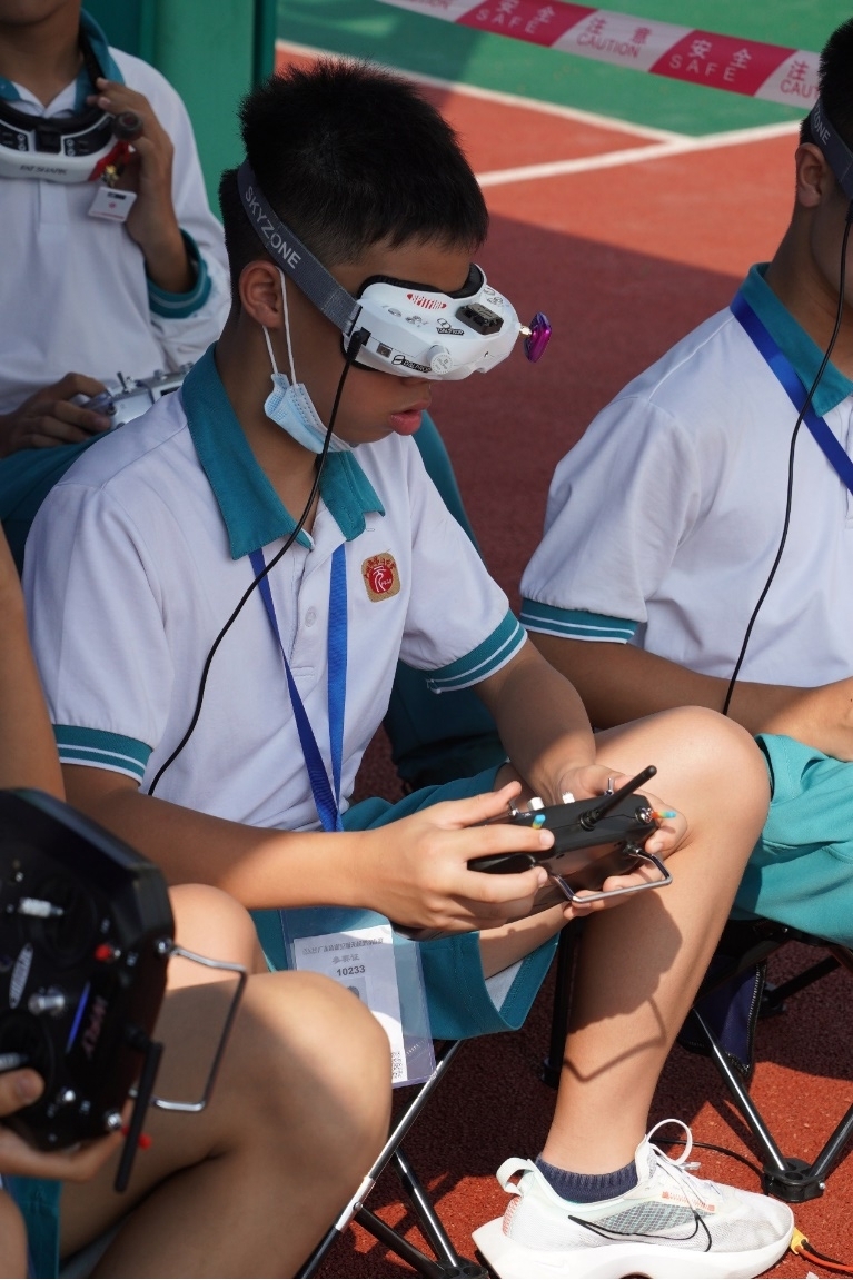 最緊張刺激的賽事當屬“青蜂號“FPV競速賽,選手配帶目鏡,以第一視角操控“青蜂號“無人機,無人機速度極快地穿越障礙,選手猶如駕駛宇宙飛船在時間隧道中飛行,最快速度通過所有障礙的選手勝出,勝負就在毫厘之間。經過兩天的角逐,各獎項名花有主,其中最緊張刺激的“青蜂號”FPV競速賽冠軍被來自中山市小欖花城中學的陳銘以33.7秒的成績獲得;遙控電動繞標競速賽冠軍被來自廣州市第二中學南沙天元的李皓哲以22.43秒成績獲得。