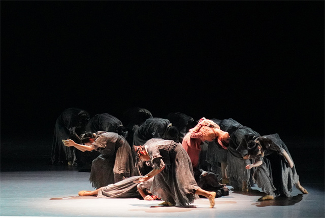 他還舉例說,在《兵車行》的舞段,雖然群舞演員始終保持著一個前后聳肩往前邁步的鏡頭,但每一次的邁步演員的狀態和層次都不一樣,它其實是出杜甫看到這些服兵役的百姓內心波瀾起伏的體現。
