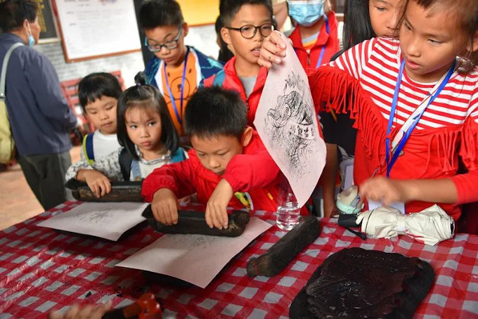 領略了一番非遺文化的魅力后,同學們迎來最為期待的環節——體驗木版年畫制作。