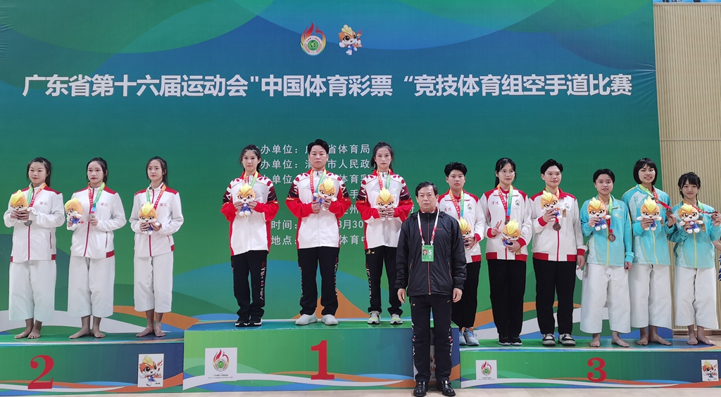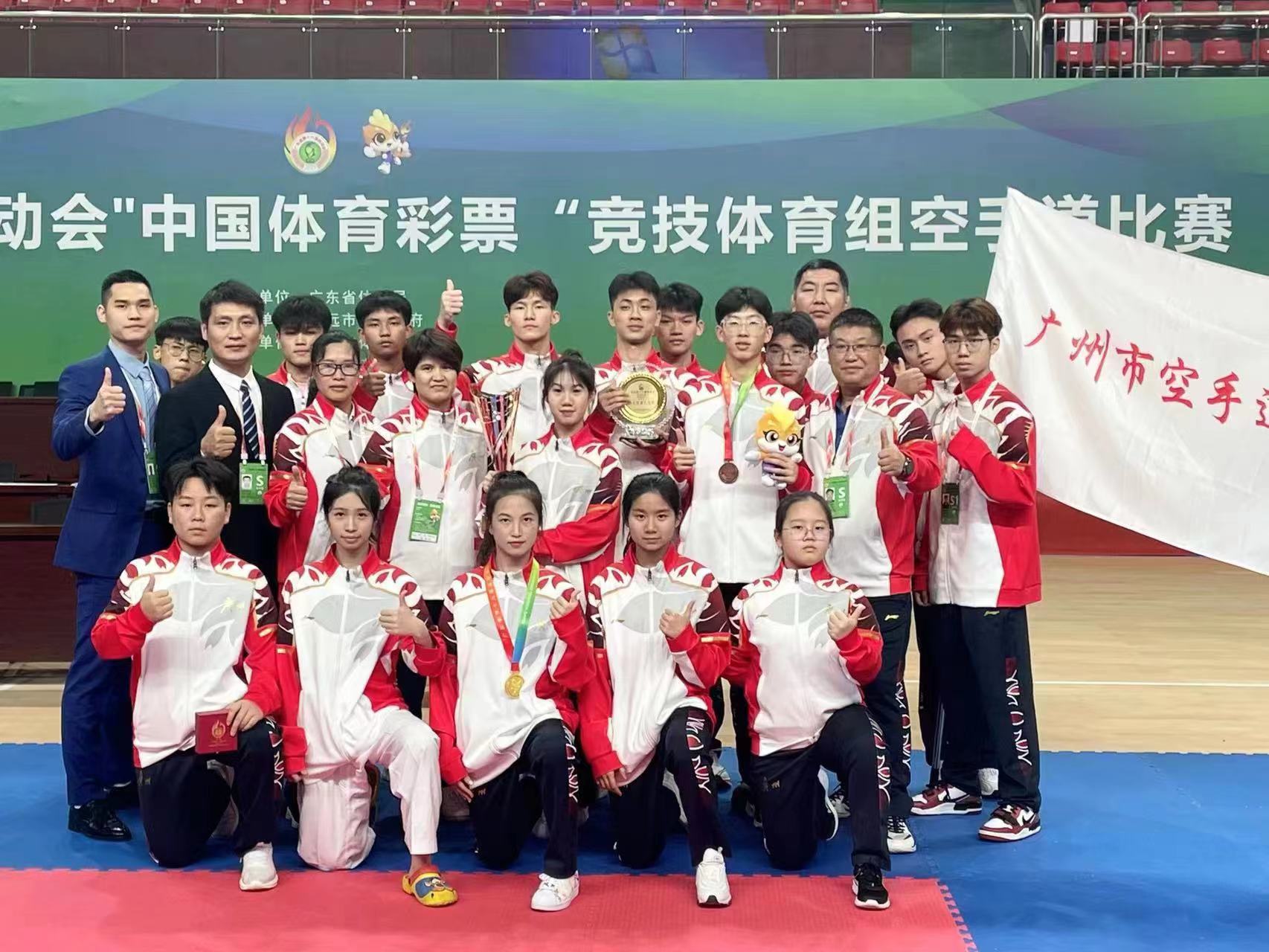 日前,廣東省第十六屆運動會空手道項目比賽在清遠連州市舉行,廣州體育代表團空手道隊共派出19名運動員參加20個小項的比賽,共獲得2金2銀5銅,138.5分,金牌數并列第4、獎牌數躋身三甲,并獲體育道德風尚獎,實現運動成績與精神文明雙豐收。