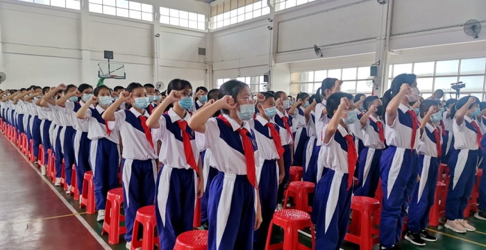 接著,由羅結(jié)晶副主任帶領(lǐng)初一年級(jí)全體學(xué)生重溫入隊(duì)誓詞:“我是中國(guó)少年先鋒隊(duì)隊(duì)員,我在隊(duì)旗下宣誓:我熱愛中國(guó)共產(chǎn)黨……”。嘹亮的誓詞,堅(jiān)定的決心,再次深深植入孩子們的心靈。