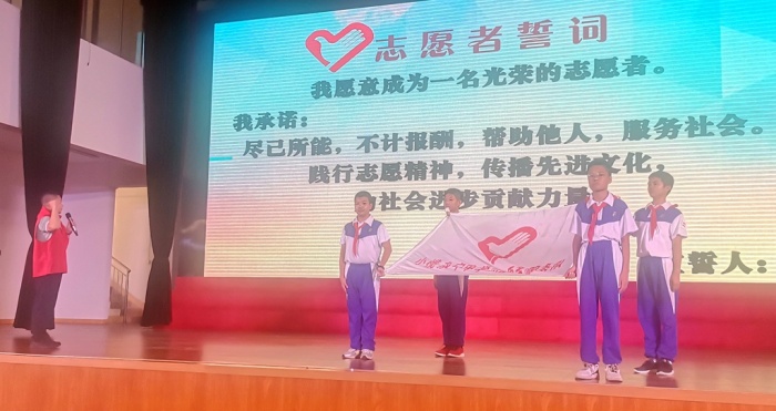 最后,初一年級(jí)10個(gè)班級(jí)學(xué)生分別進(jìn)行了新生入學(xué)宣誓儀式和志愿者宣誓儀式。宣誓儀式,讓新初一的少先隊(duì)員們更加明確學(xué)校規(guī)章制度,更加清晰自我奮斗目標(biāo)和作為一名志愿者的光榮承諾。
