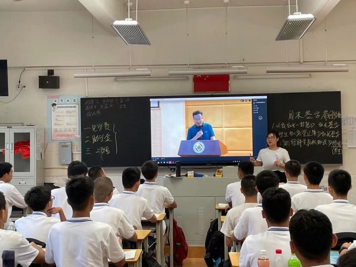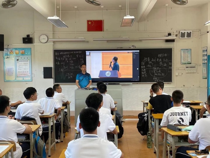 他以中山籍奧運(yùn)健兒蘇炳添在東京奧運(yùn)賽場上頑強(qiáng)拼搏為國爭光談起,激發(fā)青年學(xué)生對民族的自豪感和榮譽(yù)感。繼而他拋磚引玉地提出問題:“同學(xué)們對責(zé)任與擔(dān)當(dāng)?shù)目捶ㄊ鞘裁矗俊薄白鳛樾聲r代的青年,你們的時代擔(dān)當(dāng)是什么?”事例催人奮進(jìn),問題發(fā)人深省。