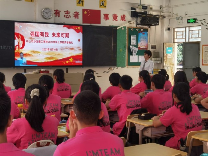 9月10日,中山市沙溪理工學(xué)校舉行線上開學(xué)典禮,全體在校師生近4000人在課室、實(shí)訓(xùn)室、綜藝廳等場室通過線上直播的方式參加。