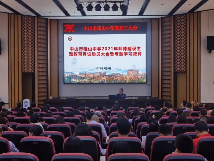 9月9日,桂山中學在德馨樓一樓報告廳召開2021年師德建設主題教育月動員大會并組織第一次專題學習教育,標志著本學年師德建設正式拉開序幕。學校黨委書記、校長董再明同志為全體師生傳達中央、省、市文件精神,號召全體教師講規矩、守底線,做一名心無旁騖干事業、全心全意服務學生的優秀教師。
