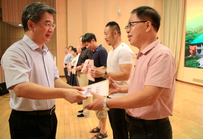 會上,林加良校長在熱烈的掌聲中代表學校為退休教工頒發了終生成就獎,并率校黨委委員敬獻了鮮花,表達了對退休教工深厚而真誠的感謝之情,盛贊他們為紀中的發展作出了重要貢獻。冼葉梅老師代表退休教師發言,她樸素的言語滲透了對黨的教育事業的忠誠和熱愛,對充滿溫暖和愛意的紀中大家庭的眷戀和不舍,并且用自己普通而平凡的事跡詮釋了今年教師節“賡續百年初心,擔當育人使命”的主題。