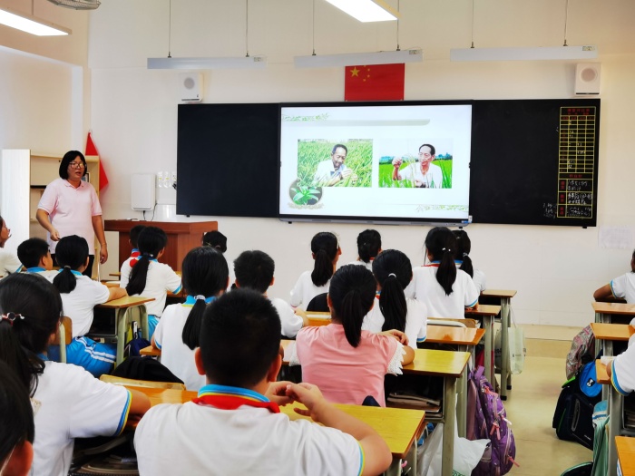 接著,同學們談一談自己心中的偶像。每個學生都積極參與,課堂氣氛活躍。有的孩子說:“我的偶像是鐘南山爺爺,他在抗疫戰(zhàn)爭中挺身而出,不顧個人安危救國家于危難之中。”有的孩子說:“我的偶像是中國飛人蘇炳添,他創(chuàng)造了歷史,敢于努力拼搏、不斷超越!?!庇械暮⒆诱f:“我的偶像是‘雜交水稻之父’袁隆平爺爺,他解決了全世界五分之一人口的糧食難題?!?孩子們暢所欲言,紛紛分享自己心目中的偶像:鐵榔頭“郎平”、優(yōu)秀的女科學家“居里夫人”、鞠躬盡瘁的“諸葛亮”、默默無聞的清潔工人、盡心盡責的交警叔叔、堅強勇敢的消防員、救死扶傷的醫(yī)生、默默無聞的老師……