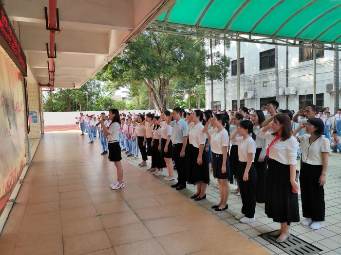 上午八點,全體師生精神抖擻的匯聚于學校操場,鮮艷的五星紅旗在升旗儀仗隊的護衛下,伴著雄壯的義勇軍進行曲,與太陽一同冉冉升起。在莊嚴的升國旗儀式后,校長莫文杰進行了熱情洋溢的致詞,向辛勤耕耘的老師們致以節日的祝賀和衷心的感謝,勉勵教師們努力成為與時俱進的新時代教師,要有熱愛教育的定力和淡泊名利的堅守,做有理想信念、有道德情操、有扎實學識、有仁愛之心的“四有”好老師。