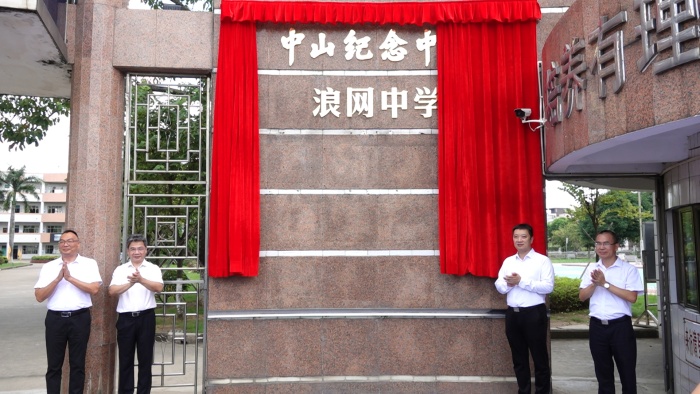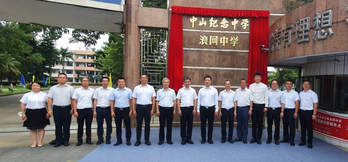 簽約儀式結(jié)束后,火炬開發(fā)區(qū)黨工委副書記黃宇健,火炬區(qū)黨工委委員、民眾街道黨工委副書記、辦事處主任黃聲群,市教育工委委員、教體局副局長(zhǎng)黎國(guó)喜,中山紀(jì)念中學(xué)黨委書記、校長(zhǎng)林加良前往浪網(wǎng)中學(xué)正門口與新任副校長(zhǎng)楚東升舉行揭牌儀式并合影留念。
