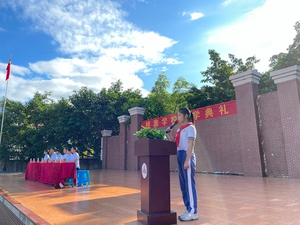 金風送爽,丹桂飄香,又是一個新學年的開始。2021年9月3日上午8:00,桂南學校小學部全體師生歡聚在學校運動場,舉行了秋季開學典禮。莊嚴的升旗儀式拉開了開學典禮的帷幕。雄壯的國歌響起,五星紅旗冉冉升起,全體師生面向國旗致敬。