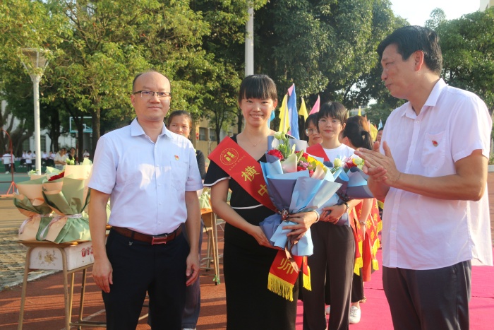 為讓教師過上一個健康快樂的教師節,充分展示學校教師團結拼搏、樂觀向上的精神風貌,進一步推進師德建設,激勵廣大教師熱愛教育事業,推動學校教育教學工作繼續高質量發展,9月10日,橫欄中學開展了一系列活動,隆重慶祝第37個教師節。橫欄鎮副鎮長蔡榮輝在鎮教育和體育事務中心主任霍嘉俊的陪同下蒞臨橫欄中學,和學校師生歡度節日,并為教師們送上了節日的祝福。
