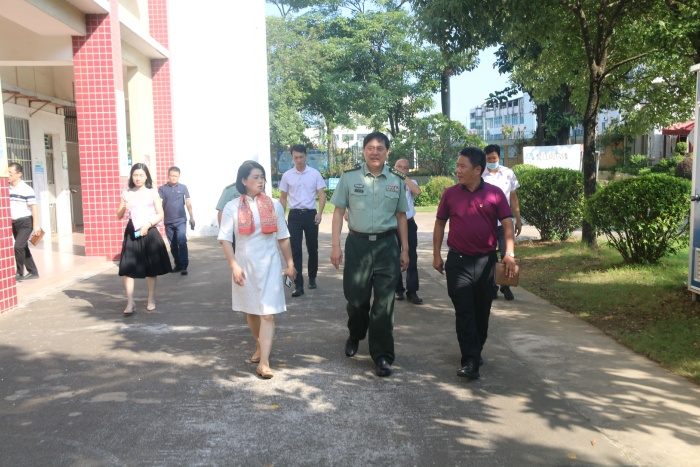 劉燦瑩等市鎮(zhèn)領導一行看望慰問了學校辛勤耕耘在教育一線的老師們,送上了黨委政府的溫暖和關懷,向老師們致以節(jié)日的祝福和親切的問候。隨后,在黎碧東校長等學校領導的陪同下,劉燦瑩一行巡視了初三教學樓、禁毒教育室、食品快檢室、交通安全活動室等相關功能場室、教學樓、辦公室等公共設施,并詳細了解了學校日常工作的相關情況。在聽取了黎碧東校長對學校建設、師生基本情況、辦學成績、新學年辦學設想以及開學防疫措施等有關概況的匯報后,政委對近年來橫欄中學在教育教學工作中所取得的成績給予充分肯定,并勉勵學校再創(chuàng)佳績。劉政委最后還表示,教育是民族振興、社會進步的基石,希望我們?nèi)w教師要堅持立德樹人的理念,奮進擔當,敬業(yè)愛崗,銳意進取,同時也要繼續(xù)加強國防安全教育,為全市教育事業(yè)發(fā)展再創(chuàng)新績。