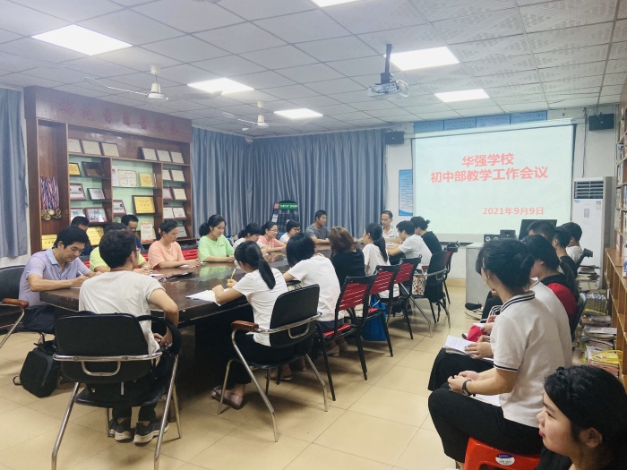 9月9日晚,華強學校初中部全體教師集中在學校會議室,召開教學工作會議。會議由主管初中部教學工作的周波主任主持。