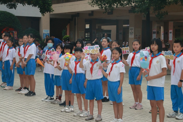 清早,校園廣播里回蕩著優美的旋律,電子屏幕上滾動著喜悅的祝福。學生代表們齊聚西門,熱切期待著能在教師們踏進校園的那一刻,送上最暖心的一句:“老師,您辛苦了,祝您教師節快樂!”