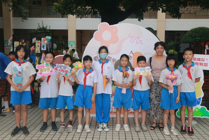 純真燦爛的笑容綻放在師生的臉上,若有若無的“花香”縈繞在青翠的樹旁。全校學生精心制作教師節手工花,繪畫的、彩紙的、輕黏土的......每一朵花都寄寓著美好的愿望,每一朵花都散發著動人的韻味,每一朵花都讓教師們陶醉感動,甜在心頭。