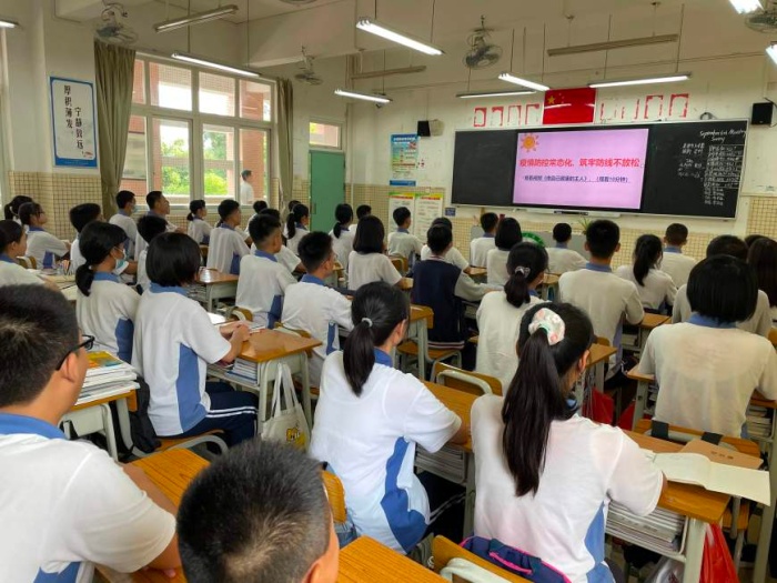 活動的第二部分為《銘記教誨,感念師恩》主題班會。班會上,全體班主任結合視頻資料,為學生們講述了教師節的由來和意義,提出了尊師重教的幾點要求。學生們通過聆聽講解,觀看視頻,深刻認識到教師在個人成長歷程中的重要意義,體會到教師對學生未來發展的責任與期盼。班會上,各班還進行了朗誦、歌唱、制作感恩卡片等等活動,學生們紛紛以最樸素的方式,傳達最真摯的感念之情。