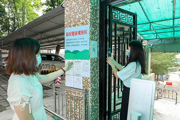 面對體溫異常并伴有咳嗽的同學,校醫迅速將其帶到校門附近的臨時隔離區并告知班主任通知家長接回。學校嚴禁體溫異常、有重點疫區旅居史、與重點疫區人員密切接觸或疑似癥狀者進入校園。