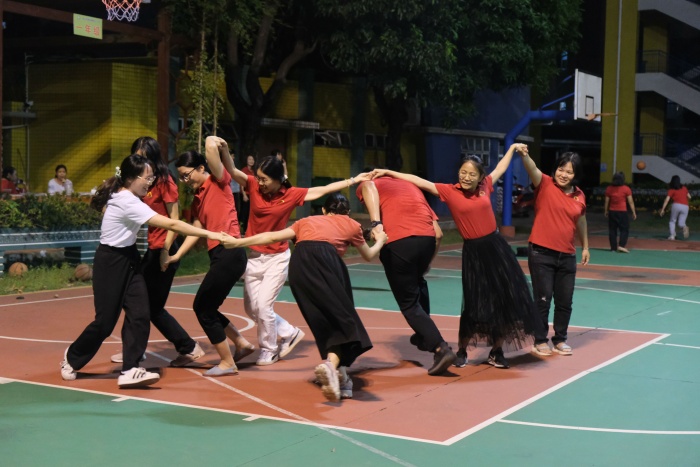 本次團建活動豐富多彩、趣味十足,活動中,體育科組為大家帶來了精彩有趣的團隊游戲,大家在游戲中體驗競爭、合作的樂趣和團隊所發揮的力量。首先,在體育科組的指引下,全校教職工分成八大組。此次團建的第一個環節是游戲“雙人夾球接力跑”。老師們從指定位置開始,由兩人夾球出發到達標志桶后返回,進行接力,根據8個小組時間長短判別勝負。第二個環節是“托乒乓球球賽跑”,本環節極大地考驗了大家的反應能力和協調性,比賽過程緊張有序,精彩紛呈。第三個環節是“人體呼啦圈”。各組成員手拉手站成一個橫排,從第一個人開始轉圈,依次轉過中間的空隙。為了贏得游戲比賽,每個隊伍中的老師們都啟動智慧,一起協商比賽策略。大家都有著互相競爭的精神,能在游戲過程中聽到大家相互協作、相互配合時空中彌漫的歡聲笑語。第四個環節是“趕籃球”。聽到開始信號后,大家向折返線處跑,繞過標志桿再跑回起點,過線后將球和拍交給下一個運動員,活動緊張刺激又趣味十足!此次教師團建活動在老師們的歡聲笑語中結束,最終第1、3、6組獲得本次比賽的勝利。在此次活動中,教職工們不僅享受到趣味運動帶來的娛樂感,培養了與搭檔之間的默契,更是把娛樂和競爭集于一體。大家在此次活動過程中感受到了人與人之間相互理解、相互支持的重要性,更為校園文化建設添上了一抹絢麗的色彩。