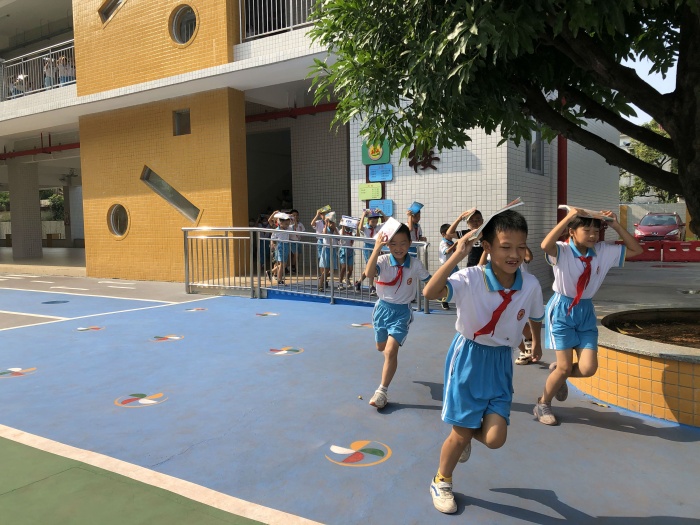 大課間,隨著一聲急促的防空警報聲響起,全體學生在老師的指揮下,迅速進入應急狀態。所有學生按照防火逃生演練路線,迅速而有序地通過各樓層疏散撤離到學校操場上。各班級迅速清點人數,并向級組長報告。