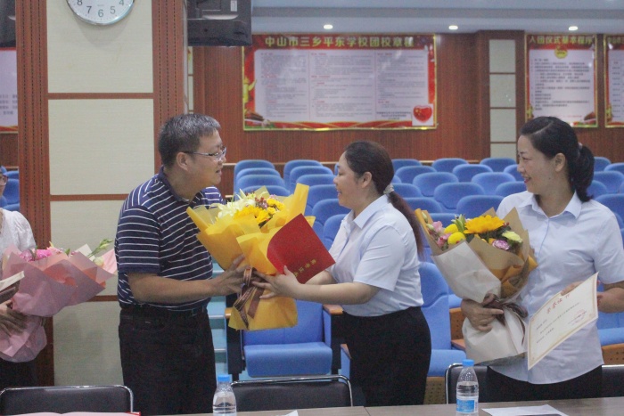 三鄉(xiāng)鎮(zhèn)黨委委員陳偉軍親自走到每一位獲獎(jiǎng)教師代表身邊,送上榮譽(yù)證書和鮮花并致以節(jié)日的關(guān)懷和問候,陳委員暖心的舉動(dòng)感動(dòng)了在場(chǎng)的每一位教師。