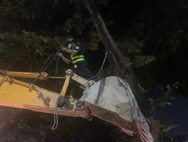 民警到場后發現跌落的電線正懸掛在半空中,夜幕之下,雖然交通晚高峰時段已過,但過往車輛和行人還很多。