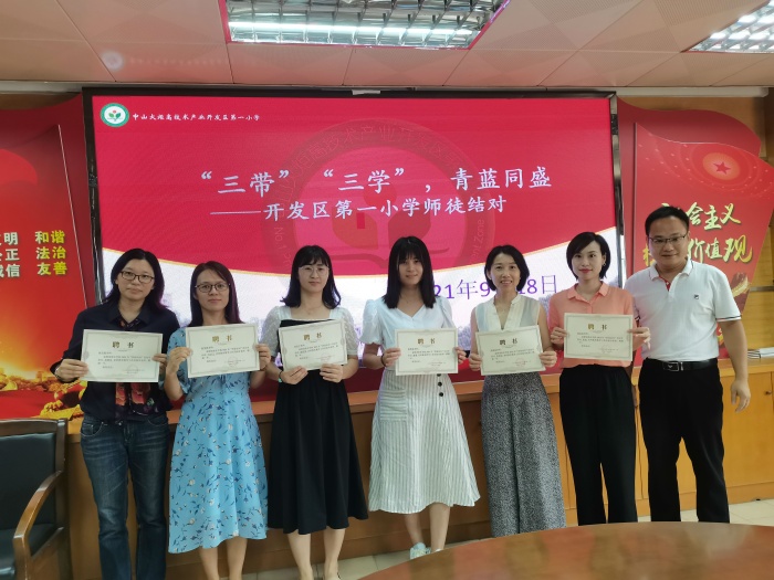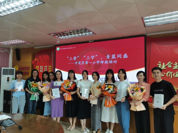 為培養青年教師,提高青年教師的教育教學水平,促進青年教師的快速成長。2021年9月18日,開發區第一小學開展了以“三帶”、“三學”青藍同盛為主題的師徒結對活動。
