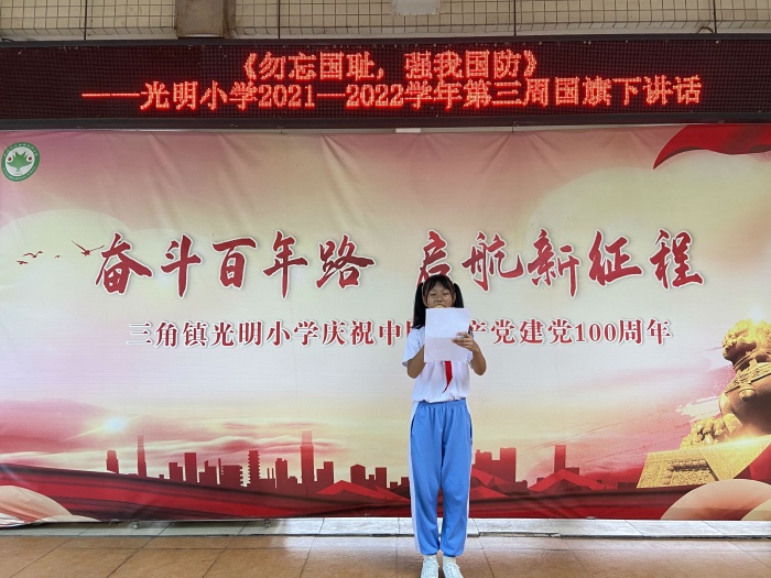 為紀念“九一八”事變90周年,進一步弘揚愛國主義精神,增強全體師生的國防觀念,9月18日上午,三角鎮光明小學組織全體師生開展紀念“九一八”主題教育活動。