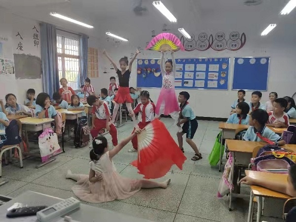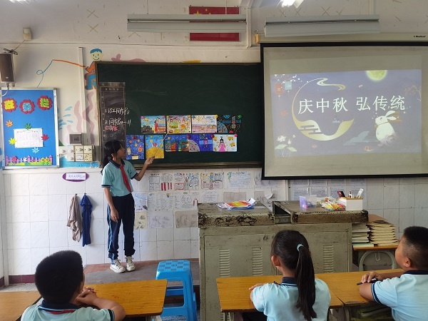 9月18日,為了讓學(xué)生更深入了解中秋節(jié)文化,少先隊大隊輔導(dǎo)員朱文娟老師在國旗下深情地講述關(guān)于中秋節(jié)的來歷,與學(xué)生們一起吟詠文人墨客的經(jīng)典詩文,呼吁大家繼承祖國優(yōu)秀傳統(tǒng)文化和傳統(tǒng)節(jié)日,增強民族文化自信心。班會課上,班主任有條不紊地開展活動。如一、二年級的小朋友,在爸爸媽媽的幫助下帶上月餅、水果等美食,與同學(xué)們開展中秋傳統(tǒng)美食交流會。三、四年級開展一次中秋創(chuàng)意燈籠展示會。會上,學(xué)生提著親手制作的燈籠得意地分享他們的制作樂趣。