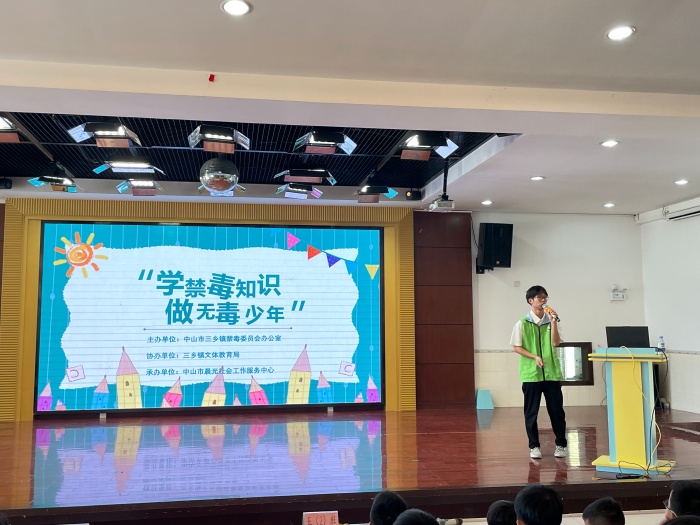 2021年9月15日上午11:00在新圩小學階梯教室,進行了一場面向全體五年級學生的禁毒講座,主題為“學禁毒知識,做無毒少年”。本次活動由中山市三鄉鎮禁毒委員會辦公室主辦,三鄉鎮文體教育局協辦,由中山市晨光社會工作服務中心的志愿者們到校為同學們講解禁毒知識。