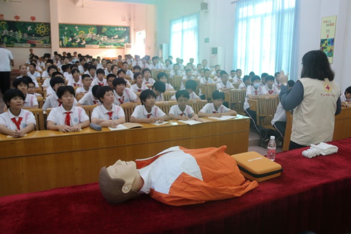 為了有效地推進應(yīng)急救護普及工作,切實增強學生災(zāi)害預(yù)防、逃生避險和自救互救能力,2021年9月22日下午4點,一場意義非凡的急救培訓活動在橫欄中學階梯教室舉行。本次活動由中山市紅十字會衛(wèi)生培訓中心進行指導,由黎子丹、陳怡兩位老師負責授課,她們秉承著專注專業(yè)的精神,力求幫助全體參會的初一年級的師生有效地提高應(yīng)急救護技能。