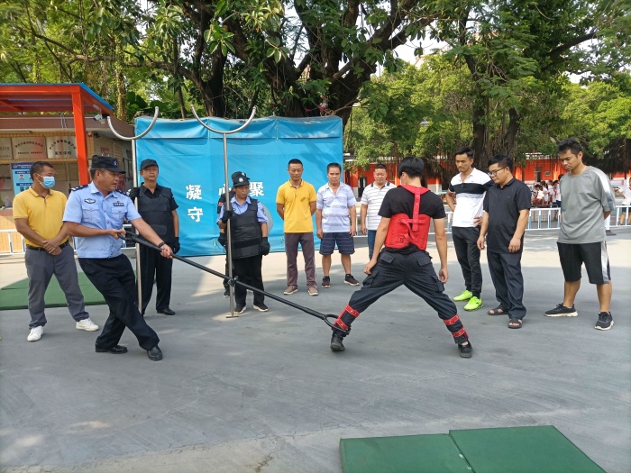 本次演練培訓邀請了黃圃鎮巡警大隊三級警長李敬昌警官及六名警員,連同雛鷹學校駐校民警——永安派出所羅浩文警官聯合開展。