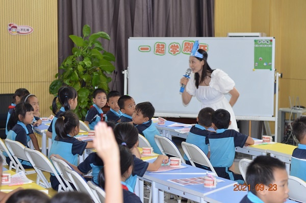 馬嶺小學高善妍同學為大家宣讀本次活動的倡議書后,由竹苑小學謝桃老師為二(1)班的同學上了一節口腔健康教育示范課。課上,謝老師扮演成“小蛀蟲”,通過繪本故事《蛀蟲日記》讓同學們學習了《一起學刷牙》。同學們在課堂上學會了如何正確刷牙,預防齲齒,掌握了口腔健康常識,邁開了自主保護牙齒的第一步。