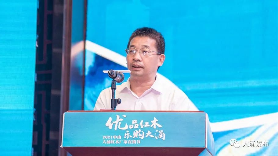 大涌鎮黨委書記王英康代表鎮黨委政府致辭,他表示,大涌是國內紅木家具產業的發源地,現有紅木家具生產企業約900多家、銷售企業400多家,是全國首個以“紅木”為主題的國家級特色小鎮,是全國三大紅木家具產銷集聚區之一,以紅木材質好、工藝水準高見長。