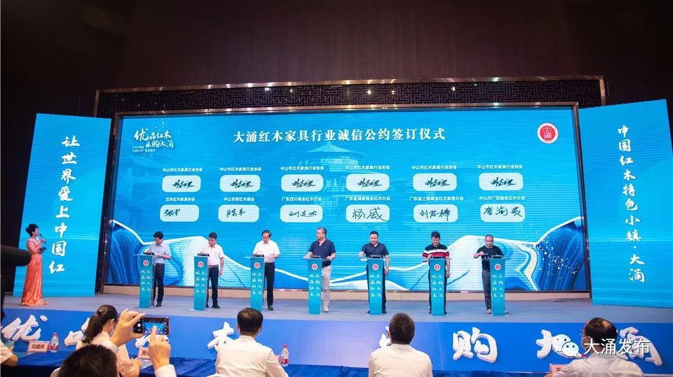 大涌紅木廠家直銷節啟動儀式上,中山市紅木家具行業協會聯同五華紅木家具協會、中山東陽紅木商會、廣東四川商會紅木分會、廣東省湖南商會紅木分會、廣東省上饒商會紅木家居分會、中山市廣西商會紅木分會共7家行業協會共同發布大涌紅木家具行業誠信公約,深化紅木家具行業信用體系建設,圍繞誠信建設萬里行活動,優化大涌鎮紅木家具行業誠信經營、放心消費的市場環境。