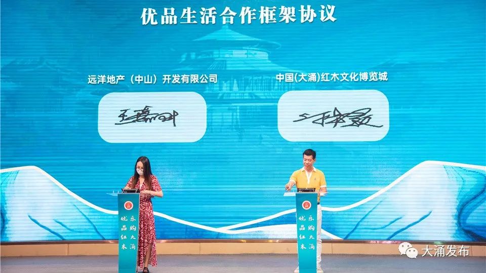 進一步深化紅博城與房企的合作,聯手打造中式優品生活,簽訂優品生活合作框架協議,讓紅木家具走進家家戶戶。大涌鎮招商資源平臺的上線,為大涌招商工作加碼。