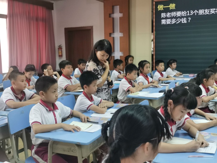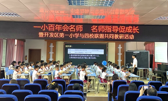 承擔(dān)此次活動的授課教師和學(xué)生是來自開發(fā)區(qū)第一小學(xué)陳開明老師和四年級5班的學(xué)生。陳老師在備課組成員的幫助下不斷調(diào)整教學(xué)方法,在前期多次試教中完善課堂細節(jié),精準(zhǔn)把握課堂預(yù)設(shè)與教學(xué)效果。讓人眼前一亮的是,在此次展示的四年級上冊《三位數(shù)乘兩位數(shù)》課堂中,陳老師把數(shù)形結(jié)合、算式和豎式相結(jié)合,引導(dǎo)學(xué)生不僅要知道“怎么算”,還要明白“為什么這樣算”,突破常規(guī)算理;新穎的教學(xué)策略,既培養(yǎng)學(xué)生思考的學(xué)習(xí)習(xí)慣,更突出了學(xué)本教學(xué)的理念,同時能有效運用舊知遷移完成新知學(xué)習(xí),達到了很好的教學(xué)效果。給在座的老師們呈現(xiàn)了一場知識的盛宴,帶來了很多啟發(fā)和思考。