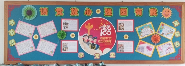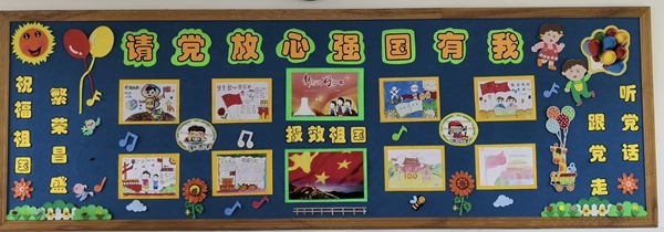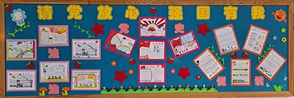 正所謂“少年強則中國強”,為了激起學生的愛國熱情,各班通過板報布置,以潤物細無聲的形式進行愛國主義教育。本次板報的主題為“請黨放心,強國有我”,各班學生在正副班主任的指導與帶領下,為班級布置了形式多樣、色彩鮮明、教育內容童氣滿滿的黑板報,展示了“黨史”“法治”“閱讀”等主題內容,有的班級還結合班級特色展示班級活動風采。板報區域雖小,卻布置規整,教育內容豐富。