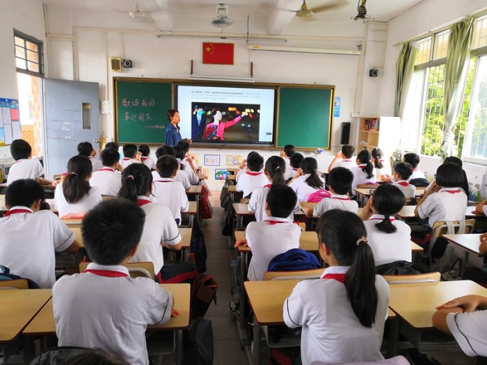 首先,各班班主任結合今年“建黨百年”“中華人民共和國成立72周年”“孟晚舟回國”等話題內容開展此次主題班會。課上,各班班主任根據學情特點,以形式多樣的教學形式引導學生融入本次主題班會課中。有的班級在班主任與“小歌唱家”的帶領下學習愛國歌曲,有的班級則通過觀看視頻的形式進一步了解祖國的發展與變化;有的班級則以“孟晚舟案件”為熱點話題展開討論,并引導學生理解孟晚舟的平安歸國背后代表著中國國力的日益強盛,代表著中國共產黨始終堅定守護人民,為人民服務的決心,代表著我們的祖國始終相信正義,堅定捍衛中國人民的利益,捍衛中國國家的尊嚴。