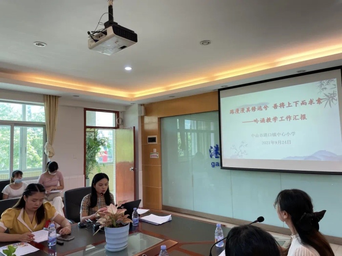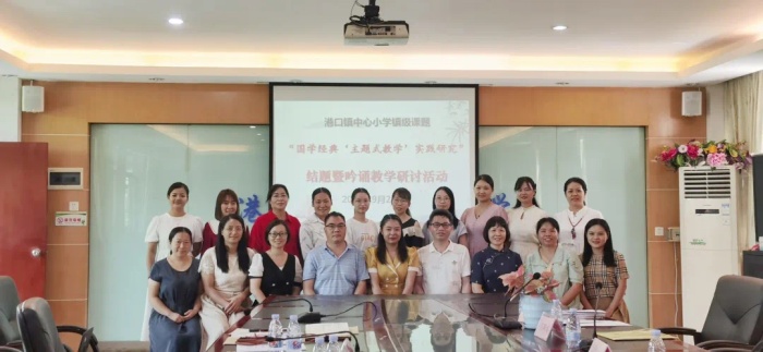 在果實(shí)累累的金秋九月,2021年9月24日上午,港口鎮(zhèn)中心小學(xué)開展了鎮(zhèn)級語文課題《國學(xué)經(jīng)典“主題式教學(xué)”實(shí)踐研究》結(jié)題活動(dòng)暨吟誦教學(xué)研討活動(dòng)。參加活動(dòng)的專家組有港口鎮(zhèn)教育和體育事務(wù)中心張育文副主任、小學(xué)教研專干蘇彩南老師,民主小學(xué)李菲菲主任,港口鎮(zhèn)中心小學(xué)李小健校長、梁文玲副校長等行政,課題組全體成員以及港口鎮(zhèn)各兄弟學(xué)校的語文老師代表參加了活動(dòng)。