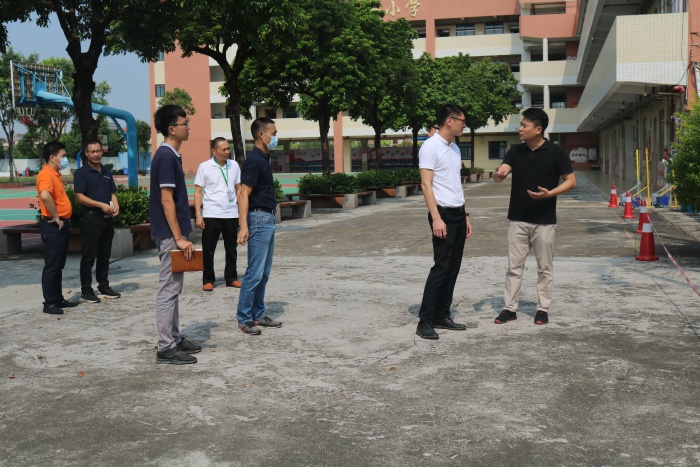 在崔杰文校長的陪同下,冼委員等人實地察看了學校校貌校建、疫情防控及安全管理情況,了解黨史學習教育開展情況。在視察過程中,崔杰文校長匯報了學校開學以來的工作情況以及學校發展的情況。
