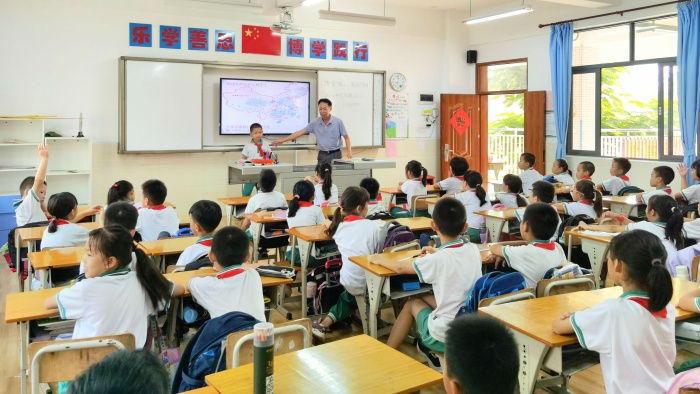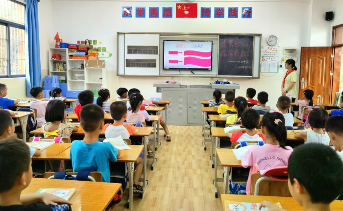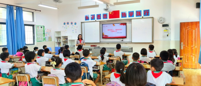 隊會課上,各中隊輔導員帶領隊員重溫“請黨放心 強國有我”的獻詞,借此契機,利用“學習強國”平臺上資源,播放典型黨員楷模的故事,引導學生學習黨發(fā)展、斗爭、壯大過程中的光輝歷史和革命英雄事跡,學習他們無私奉獻的精神。結(jié)合即將到來的國慶節(jié),中隊輔導員也帶領隊員逐一了解國名的由來、建國時間、國旗、國徽含義等有關(guān)知識,認識到祖國的風雨兼程,才有今天的繁榮昌盛,讓隊員們明白了作為新時代的少先隊員,要牢記使命,努力學習,用實際行動為紅領巾增光添彩。經(jīng)過本節(jié)隊課,隊員們更將“請黨放心,強國有我”這一誓言內(nèi)化于心,外化于行。