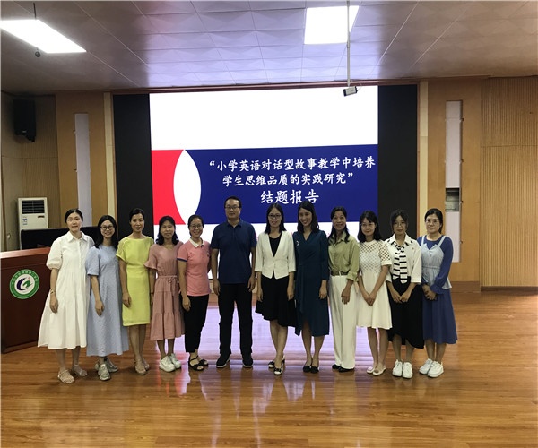 會議伊始,由廖秋菊老師率先進行了發(fā)言。她表示《小學英語對話型故事教學中培養(yǎng)學生思維品質(zhì)的實踐研究》總課題歷時三年,得到了專家們的指導,各個學校積極的探究和實踐,帶著學習研究的心態(tài)積極探索基于培養(yǎng)和發(fā)展思維品質(zhì)在中小幼英語教學中的途徑和方法。在梳理結(jié)題材料時,她不禁感嘆于大家一路走來的執(zhí)著,驚嘆于大家的投入和取得的豐碩成果。廖老師進行了總課題的結(jié)題報告,她分別從課題的研究背景、研究內(nèi)容和方法、研究成果、研究反思和今后設想等九個方面深度的分析和闡述。她表示,面對教育信息化如火如荼展開的形勢,每個一線教育者都應該提升自己的素養(yǎng),以迎接挑戰(zhàn)為宗旨,在實踐中積累經(jīng)驗,在經(jīng)驗中繼續(xù)前進,培養(yǎng)和發(fā)展學生思維品質(zhì)的任務不斷推進。接著,袁丹純老師給予課題組肯定,并作點評。隨后,郭躍輝老師給予了課題組成員充分的肯定。他指出,本課題的實踐研究,符合學校教學實際,教師運用多種研究方法,在教學實踐中不斷反思,改進教學方式。并且指導老師如何寫結(jié)題報告書。