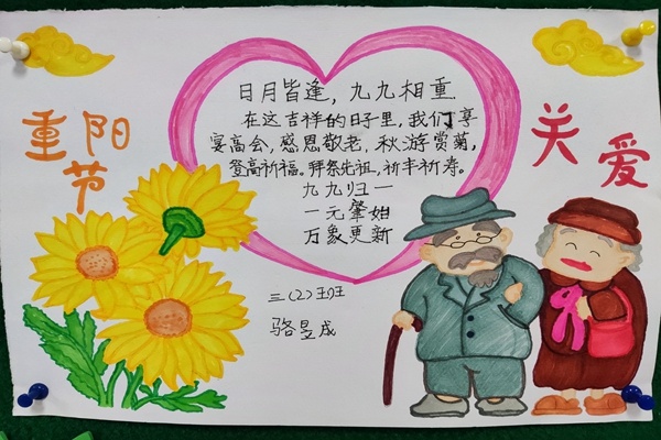 濃厚的重陽節(jié)氛圍激起了學(xué)生們的尊老、敬老、愛老、助老的強烈情感,他們通過制作手抄報的形式進一步表達心中的感恩之情。