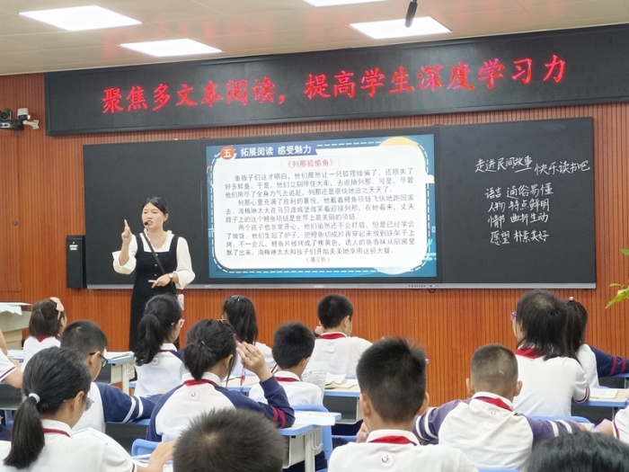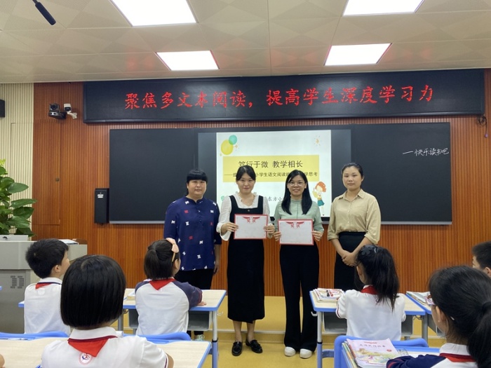 為了引領全鎮五年級語文教師,全面了解統編版五年級語文上冊教材的結構特點,聚焦多文本閱讀,提高多文本閱讀教學效率,提高學生深度學習力,2021年10月14日下午,小欖鎮東升片小學語文中心教研組在小欖鎮同樂小學舉行了統編版五年級語文上冊“聚焦多文本閱讀教學,提高學生深度學習力”的教訓一體化活動。小欖鎮小語中心教研組副組長劉獨艷老師、東方小學劉霞老師和小欖鎮東升片區學校五六年級的語文老師們出席了本次活動。