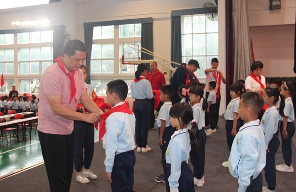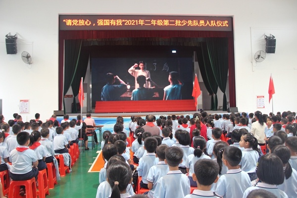 今年是中國少年先鋒隊建隊72周年,在建隊日來臨之際,小欖鎮九洲基小學舉行了 “請黨放心,強國有我”入隊儀式。來自二年級的173名孩子于2021年10月12日下午光榮加入中國少年先鋒隊。九洲基小學全體行政出席了本次活動。