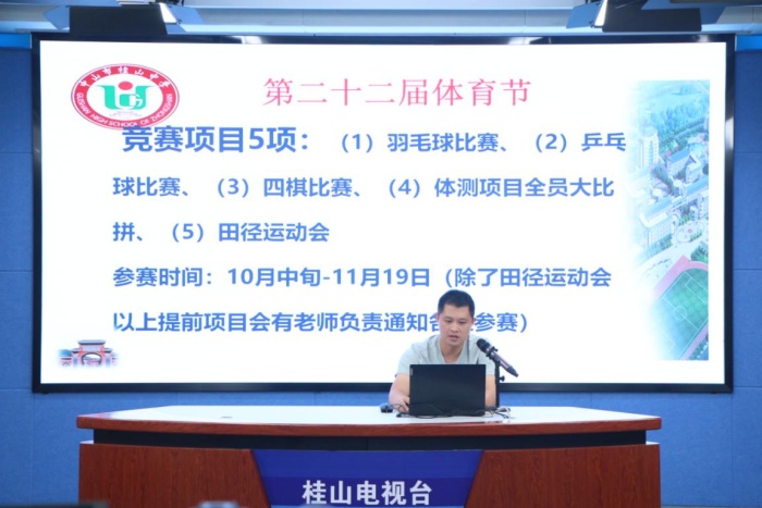 金秋時節,天高氣爽。10月11日清晨,中山市桂山中學利用校園電視臺直播方式舉行了主題為“錘煉品德 剛強不屈”的第二十二屆體育節開幕式。團委書記嚴玉龍主持校會,全校師生在課室同步收看。