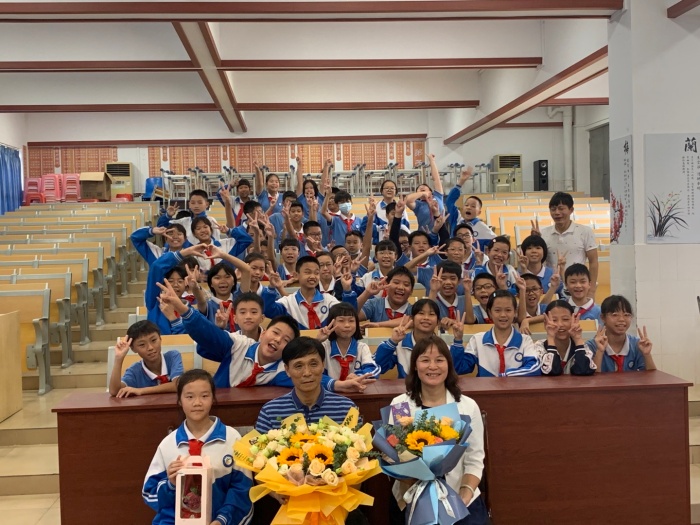 為弘揚人民教師教書育人的高尚品格,進一步提升教師的幸福感,營造濃厚的尊師氛圍,激發學生熱愛老師濃厚感情,2021年10月14日上午,四沙小學舉行了主題為“春風化雨四十載 桃李芬芳香滿園”的羅松根老師光榮退休師德主題活動。四6班、六7班全體師生和全體行政在主會場階梯室參加,其他年級師生在課室通過釘釘直播收看。