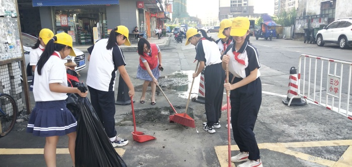 為了全面落實(shí)鎮(zhèn)創(chuàng)文明城鎮(zhèn)工作要求,三沙小學(xué)于10月11日下午開展了主題為“創(chuàng)文承載幸福夢 志愿點(diǎn)亮新時(shí)代”的創(chuàng)文志愿活動(dòng),三沙小學(xué)部分行政、六年級的師生以及部分家長義工參加了本次活動(dòng)。
