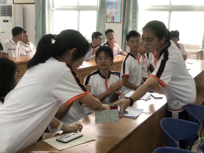 接下來,活動分批依次進行。參賽選手抽簽后,根據順序前往直播室候場備賽,其余選手回到教室通過一體機觀摩賽況。直播間鏡頭下的選手們自信開朗,侃侃而談,與賽場外觀摩直播的師生積極互動,涌現出一批“人氣主播”。專業課教師根據參賽選手的表現進行實時點評,與在教室收看直播的同學們分享直播干貨,同學們認真地進行學習記錄,并紛紛表示獲益良多。